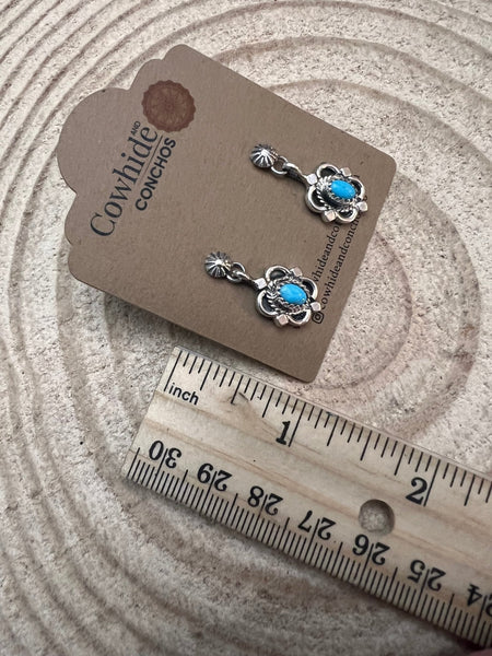 Adelarae Yazzie Navajo Handmade Sterling & Kingman Turquoise Earrings - 3/4 inch drop