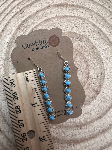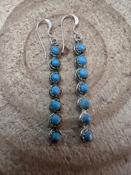 Cordelia Waknwa Zuni Handmade Sterling and Kingman Turquoise Dangle Earrings