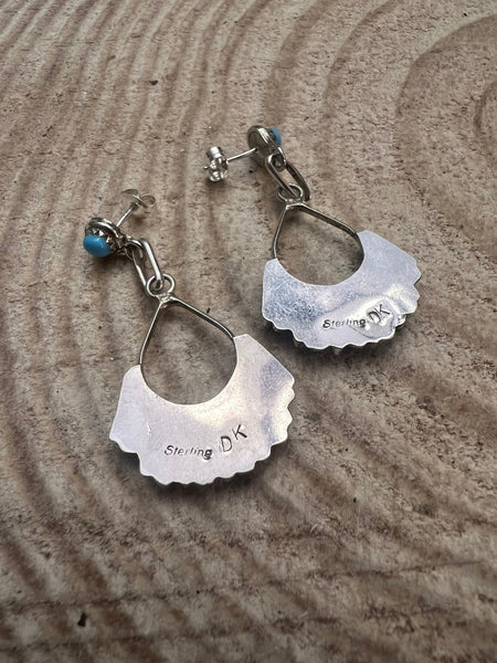 Davis Kaamasee Zuni Handmade Sterling and Kingman Turquoise Dangle Earrings