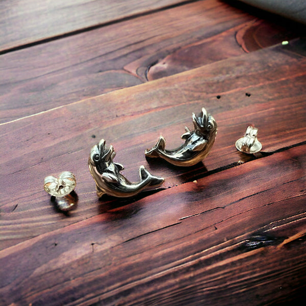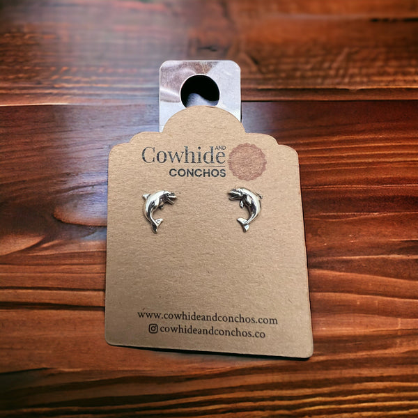Sterling silver Dolphin post earring. Get ready to make a splash with these charming post earrings, featuring playful dolphins that will bring a smile to your face. Whether for a day at the beach or a casual outing, these earrings are sure to add a touch of charm and fun to any outfit.