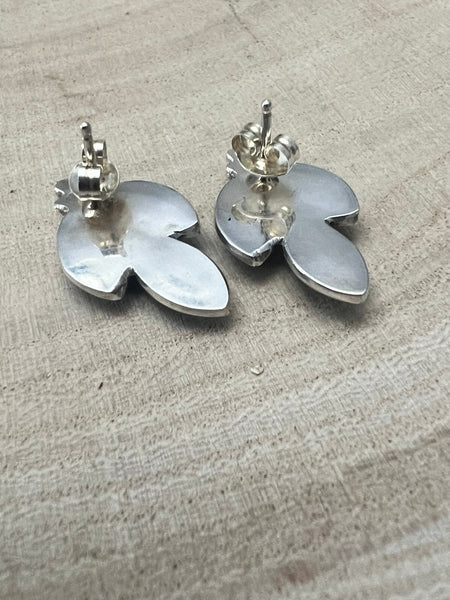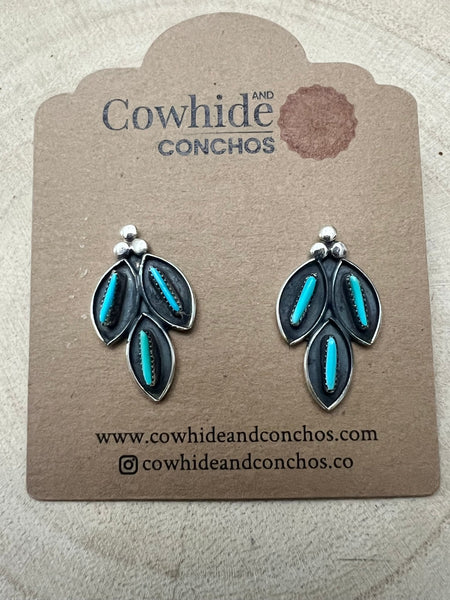 These elegant earrings by Zuni silversmith Fernando Othole showcase vibrant turquoise stones set in sterling silver, reflecting traditional craftsmanship. Measuring 7/8" in length and 1/2" in width, they offer a delicate yet distinctive look perfect for Western-inspired fashion.