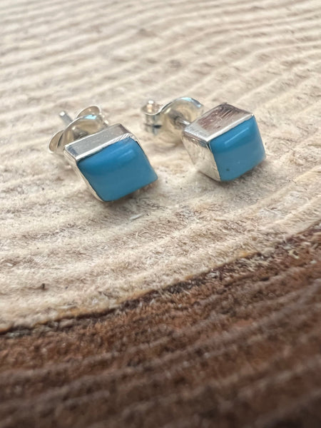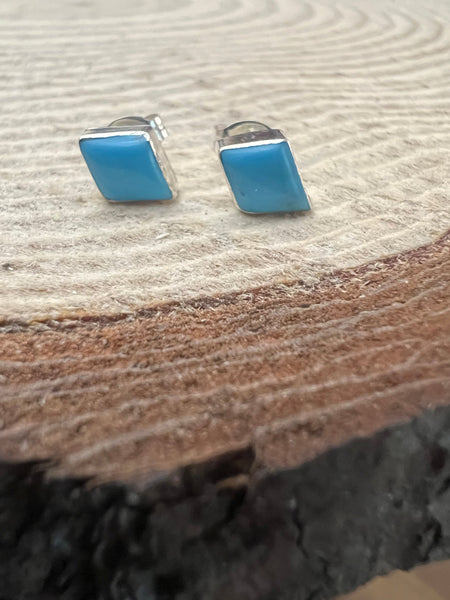 Maryann Nelia Zuni Handmade Sterling Kingman Turquoise Stud Earrings