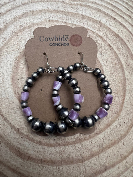 These earrings are a stylish and versatile addition to any outfit. Made with traditional Navajo pearls and stunning Wampum shell beads, they add a touch of Native culture to your wardrobe. Whether you're dressing up for a formal event or looking for a unique everyday accessory, these earrings will elevate any look with their authentic beauty.