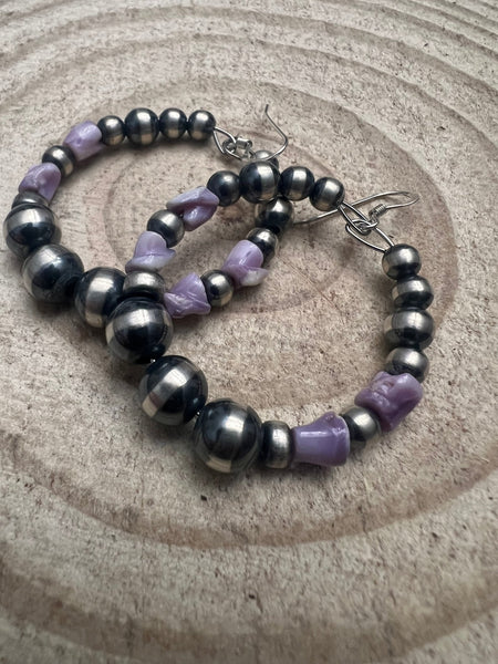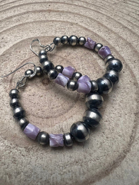 Navajo Pearl Hoop Earrings with Wampum Shell Beads - 1 1/2 inch drop