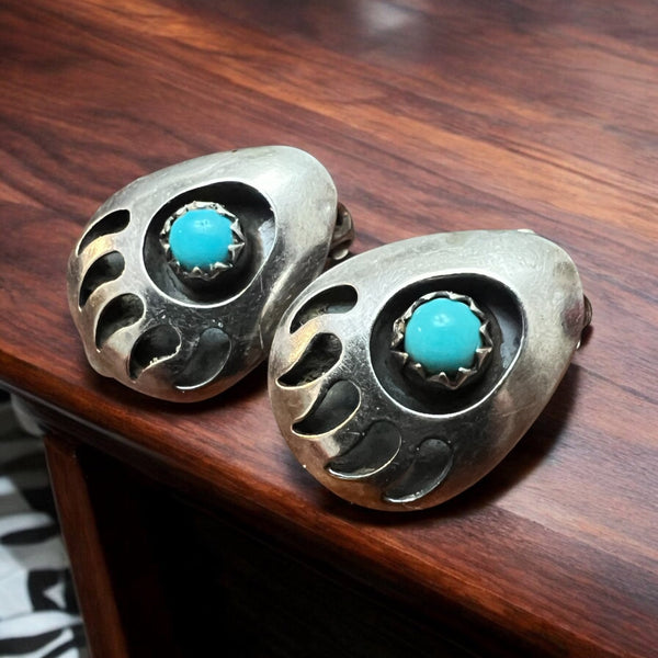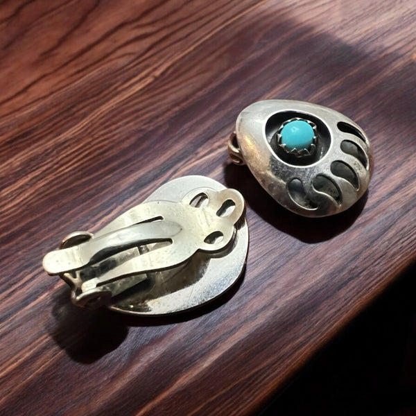 Experience the unique charm of our Petite bear paw turquoise and sterling clip-on earrings - perfect for adding a touch of vibrant color to a kids western outfit.