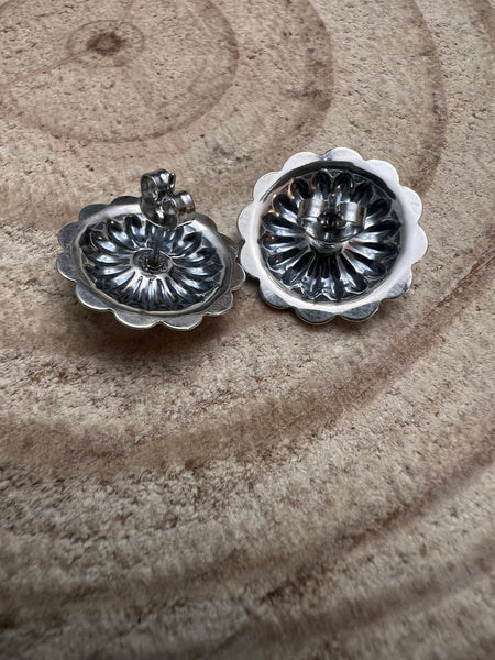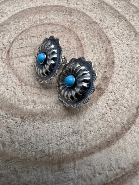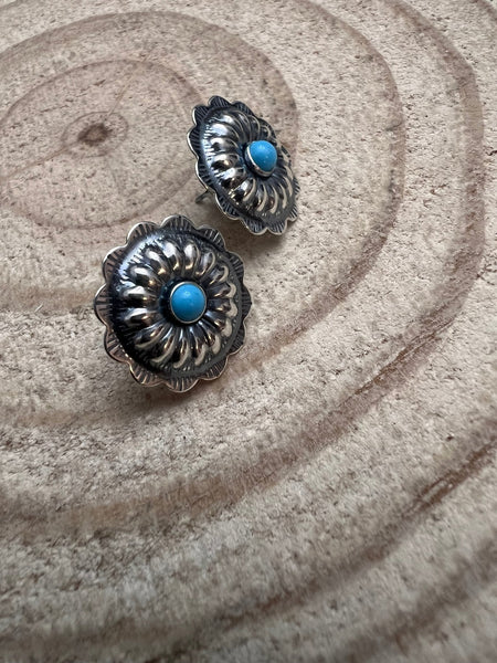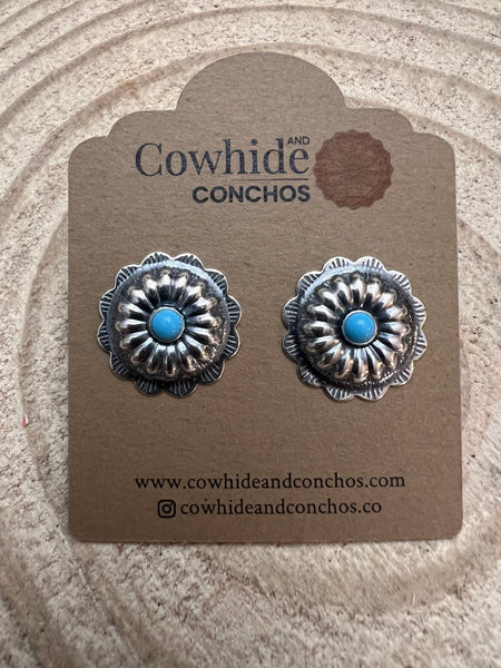 Sterling Silver Concho and Kingman Turquoise post earrings