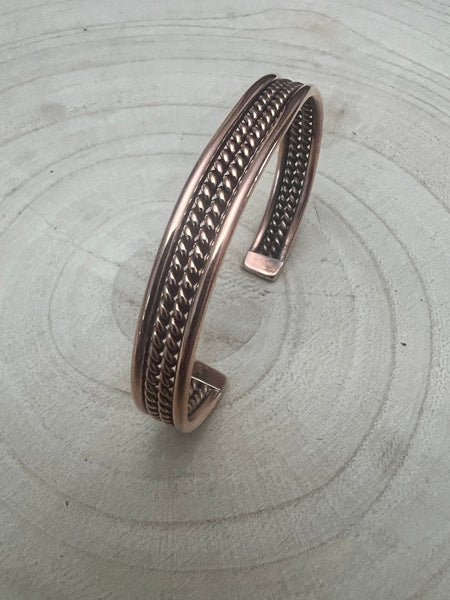 Straight from the skilled hands of Navajo artisan Elaine Tahe comes this rugged copper bracelet.