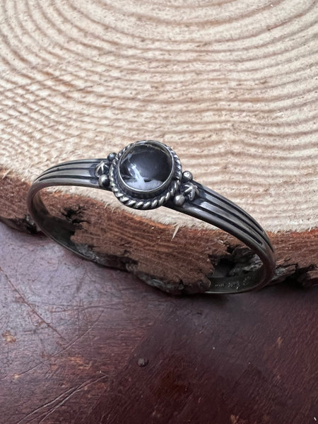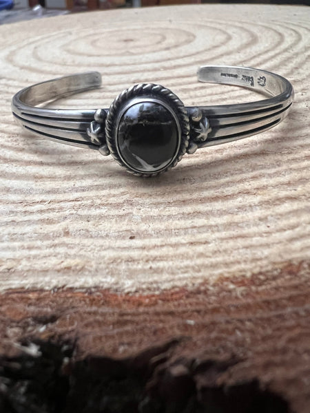 This beautiful Native American made bracelet is made with high-quality sterling silver and white buffalo. It measures 5 1/4" with a 1 1/4" gap, perfect for a 6 1/2" wrist. The width is 3/16" and it bears the makers hallmark and sterling stamp for authenticity.