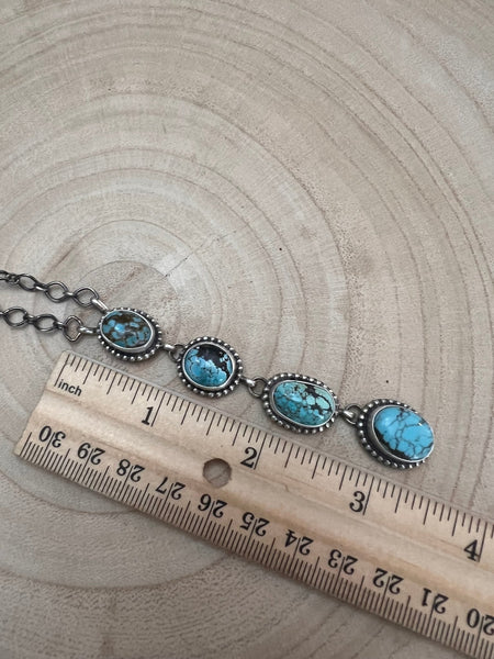 Navajo Handmade Kingman Turquoise Lariat Necklace by Lorenzo Juan - 20 inch
