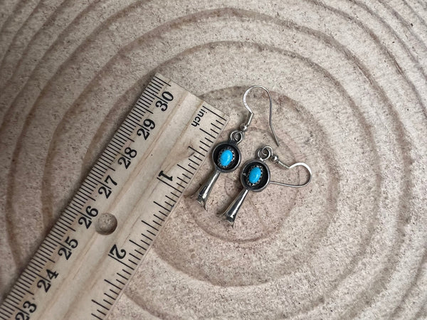 Vintage Squash Blossom and Turquoise Earrings - 1 inch drop