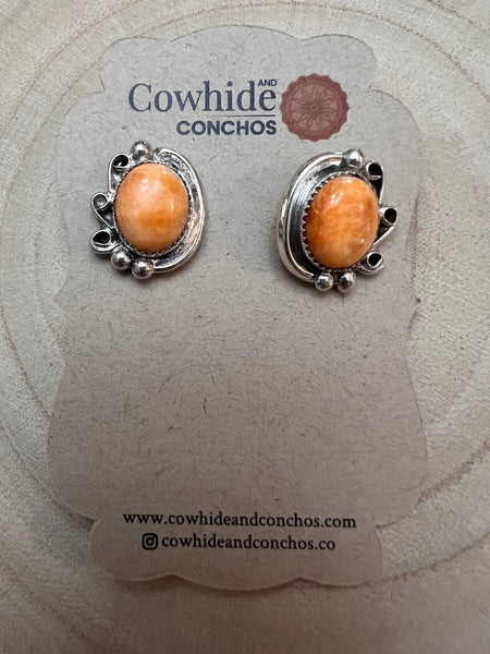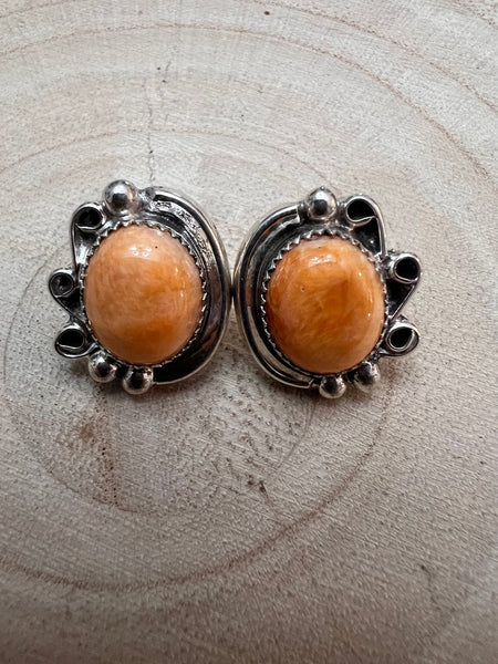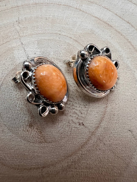 Navajo Handmade Spiny Oyster Post Earrings by Donovan Nez