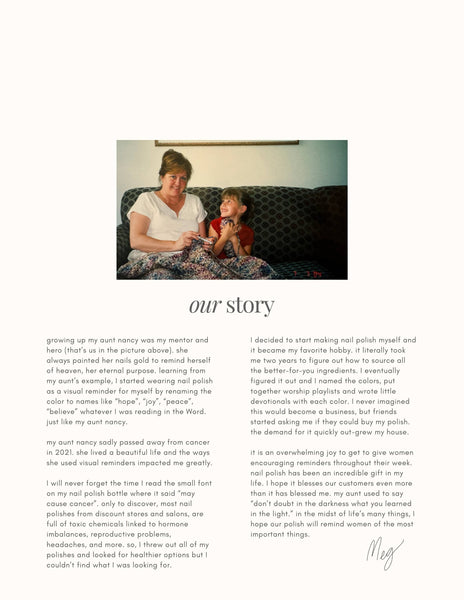 Every polish comes with an encouraging reminder, devotional and worship playlist.