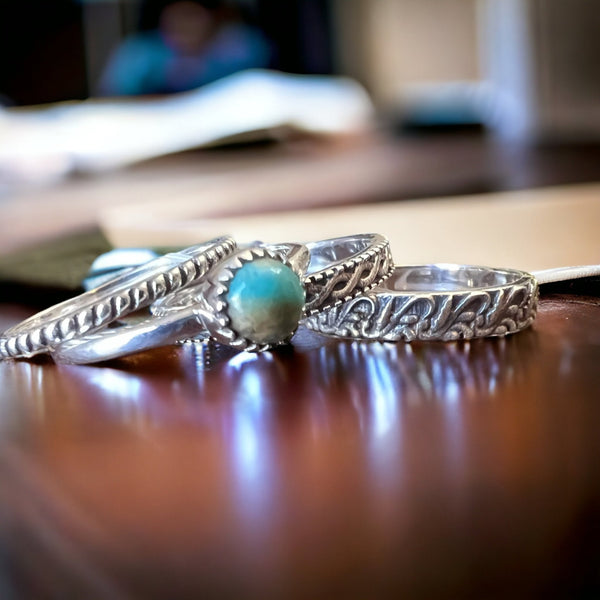 Betty Kingman Sterling Stacker Rings - Set of 4 Sterling Rings - Size 7