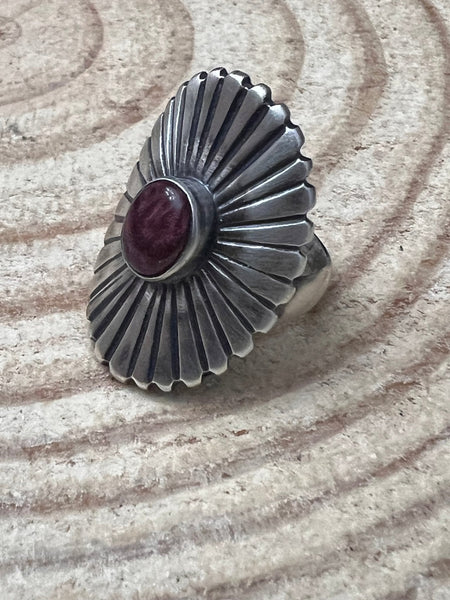 Concho Ring with Purple Spiny Oyster by Raymond Coriz - Size 7+ adjustable