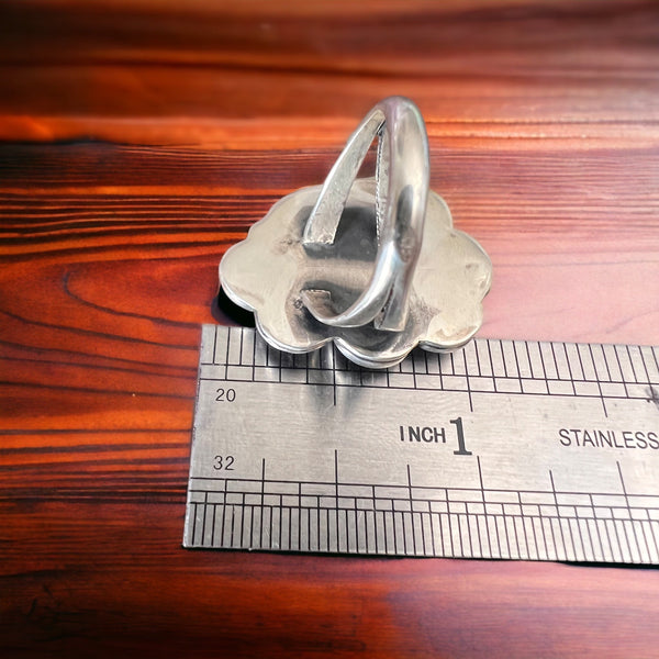 Coral ring - Coral and sterling silver with leaf - Size 6.5.