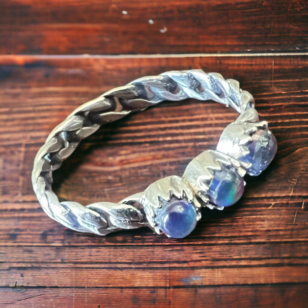Lux Aurora Opal Blue Sterling Stacker Ring