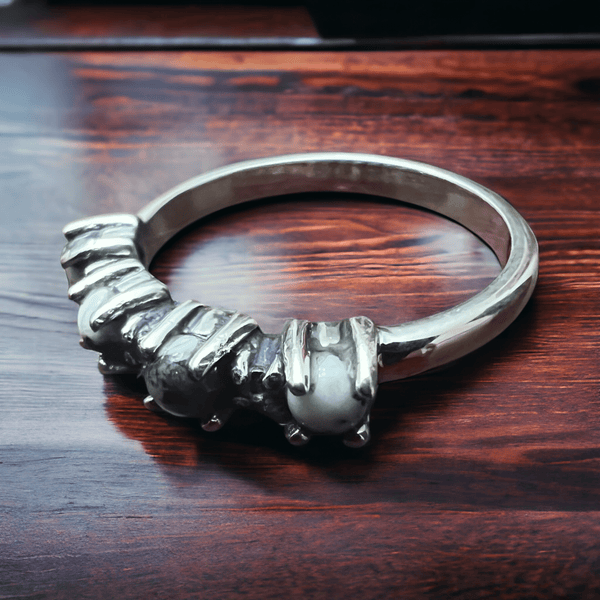 Made with high-quality sterling silver, each ring is hand-cut and features stunning white buffalo stones that add a touch of natural beauty to your outfit. Perfect for any occasion, this stacker ring is a must-have for any jewelry collection. Plus, the durable construction means it will last for years to come. Get ready to elevate your style with Roxie White Buffalo and CZ Stacker Ring.