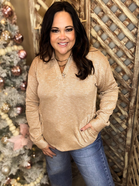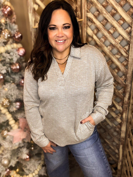Wrap yourself in cozy comfort with this two-tone ribbed pullover that's equal parts chic and casual. The soft, textured knit fabric feels amazing against your skin, while the subtle contrast ribbing keeps things modern and interesting. A relaxed fit means you can move freely, and the collared V-neckline adds just enough polish for effortless sophistication. Perfect for layering or wearing solo, this versatile piece transitions seamlessly from coffee runs to weekend hangouts. Crafted from a breathable polyester, rayon, and spandex blend for all-day wearability.