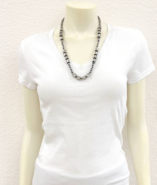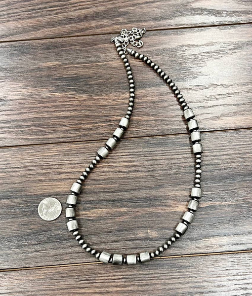Elevate your everyday look with this stunning handmade Navajo bead necklace that's as versatile as you are! Featuring a gorgeous mix of delicate 6mm round beads and eye-catching 10mm clustered cylindrical beads, this piece brings authentic artisan charm to any outfit. Wear it at 22 inches for a classic fit, or extend it to 28 inches for those days when you want to layer or go bold. At just 35 grams, it's lightweight enough for all-day wear without the guilt. Plus, it's nickel, lead, and chrome-free—because looking good shouldn't come with compromises. A true statement piece that celebrates handcrafted beauty.