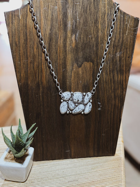 Large Rectangle Cluster Stone Chain Necklace 24"