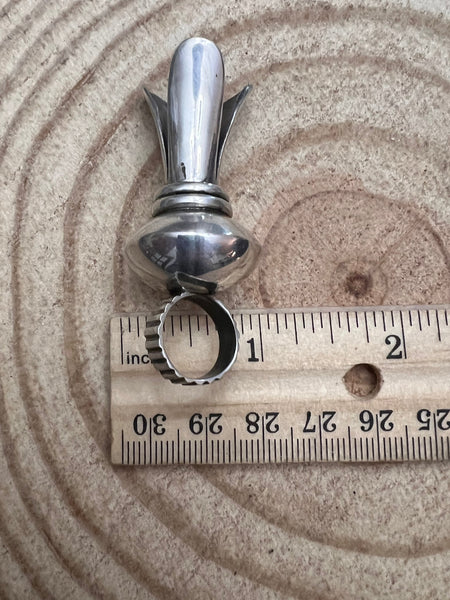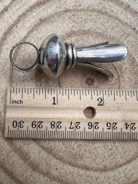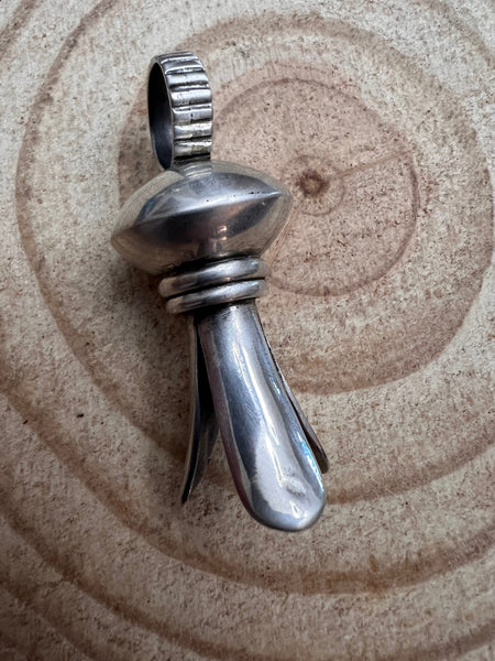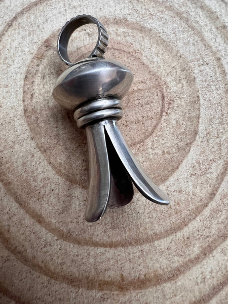 Add a touch of bold Southwestern beauty to your outfit with the Large Squash Blossom Pendant by Turquoise Mustang (not Native American)!