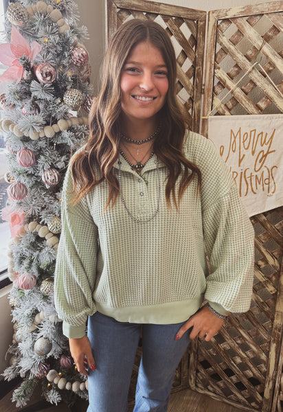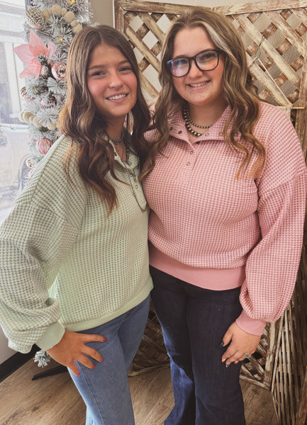 Cozy up in this oversized waffle knit wonder that's basically a hug you can wear. The mock neck keeps things chic while those dreamy balloon sleeves add just the right amount of drama. Half button-down styling means you can rock it buttoned up for put-together vibes or leave it open for effortless cool. Perfect for lazy Sundays, coffee runs, or whenever you want to feel soft and fabulous without trying too hard.