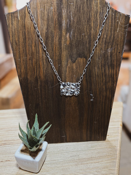 24" cluster stones on rectangle bar on paperclip chain in a variety of color options