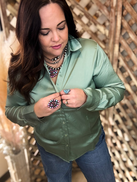 Make a statement in our Show Up & Shine Top, a luxurious silk button-down that's equal parts polished and playful. Crafted from sumptuous silk, this collared essential drapes beautifully while keeping you comfortable all day long. Choose from a vibrant palette of colors to match your mood and style—whether you're dressing it up for the office or down for weekend adventures. The perfect piece for anyone who believes getting dressed should be fun.