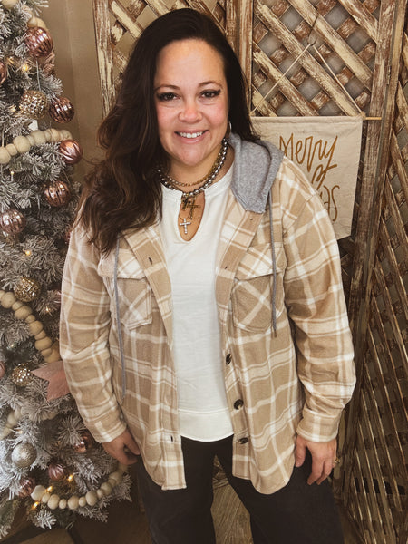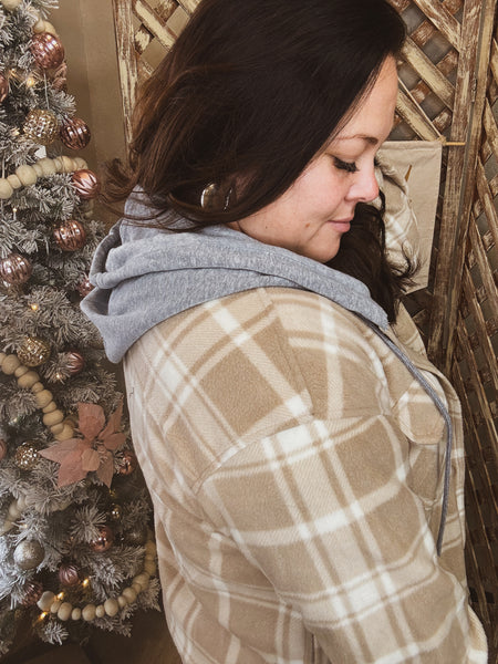 Layer up in cozy style with our Snowdrift Plaid Hooded Jacket—the ultimate shacket that bridges casual and preppy vibes. Crafted from soft print fleece (100% polyester), this long-sleeve button-down features a built-in hoodie for extra warmth and versatility. Perfect for fall and winter adventures, it's the go-to piece for back-to-school season or weekend hangouts. Whether you're channeling vintage grungy energy or polished preppy charm, this essential jacket delivers comfort without compromising on looks. Throw it on over anything and instantly elevate your outfit.